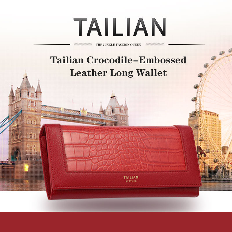 Tailian Crocodile-Embossed Leather Long Wallet